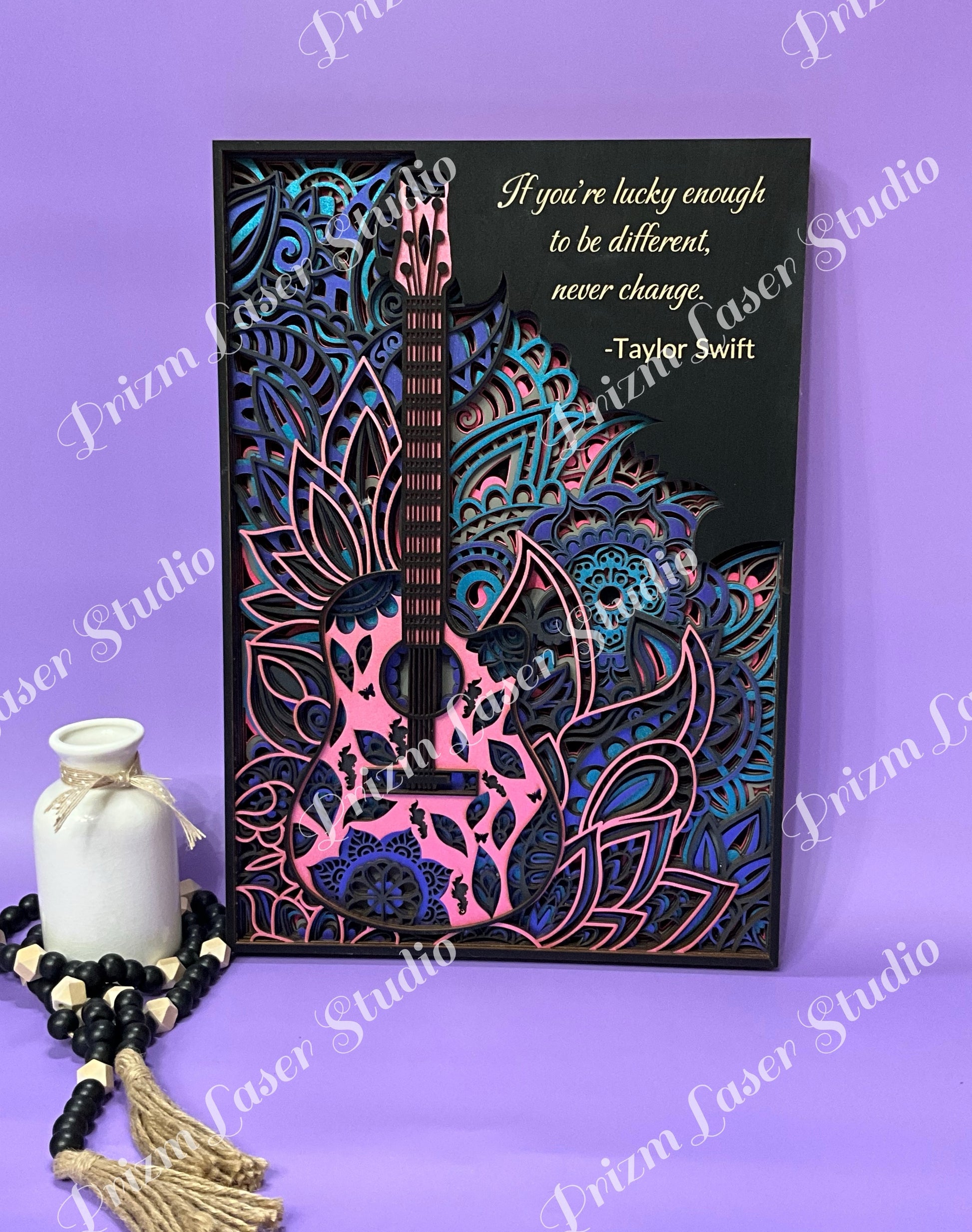 Bring inspiration and artistry into your space with this laser-cut layered guitar wall art featuring Taylor Swift’s quote: